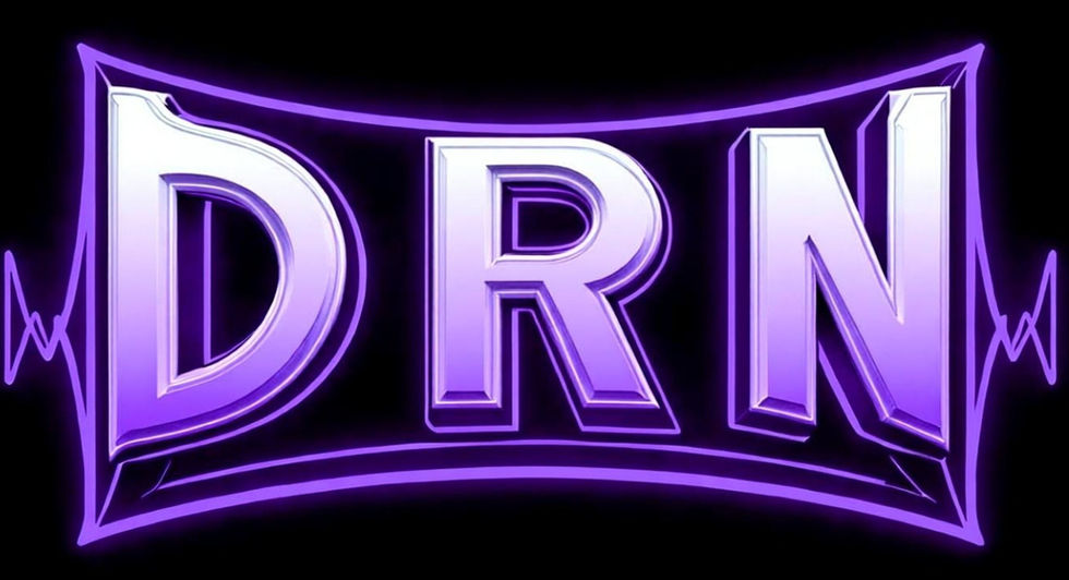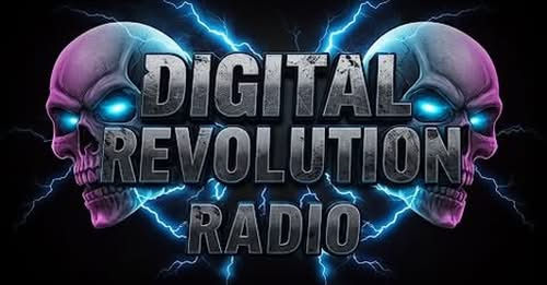A collection of logos and designs for rock radio stations, featuring vibrant colors, skulls, and music-themed elements.